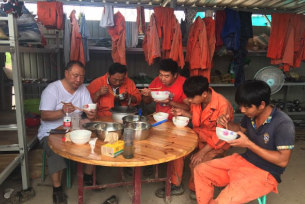 (2019年《商业人物》:左一为陈泽民在瑞丽和工人们同吃同住)