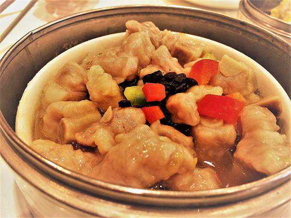 在洛杉矶吃早茶我一般只习惯去两家酒楼,一家叫做海港,一家叫做半岛。海港比较像我以前在广州和香港吃过的早茶,主要以直接点单为主。一落座,叫了茶,侍应递来折了几折的点心卡,小点、中点、大点、特点,价位不同,自己看着勾选,很快就能有条不紊地一一上桌,或是一笼一笼的,或是白瓷碟儿装着的,或是粥粉面。英语统称它们叫“DimSum”,和粤语里“点心”的发音差不多。与半岛相比,海港的点心要精致些,卖相更好看些,我最爱的是他家的鸭蛋黄流沙包、豆豉蒸排骨、卤牛百叶、还有荷叶糯米鸡,另外某人最爱的凤爪,也是每次必点。不过如果要吃个整体氛围,我还是更偏爱半岛。