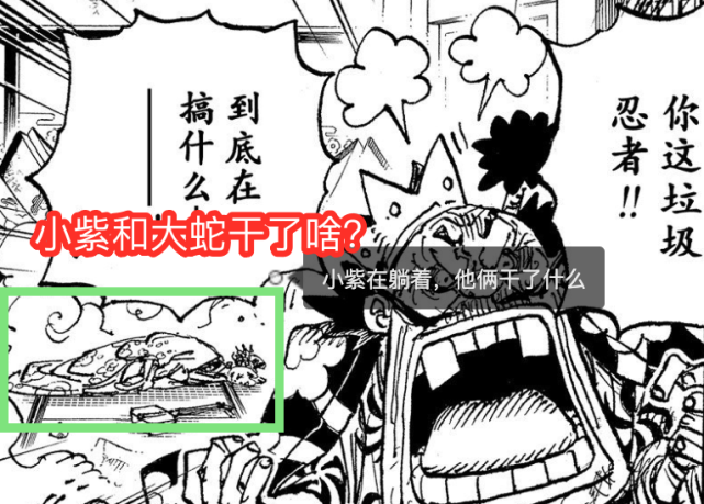 但在此之外,1041话有一个画面却让不少海米很是疑惑,搞不懂小紫与黑炭大蛇在这段时间究竟干了什么,如下图。