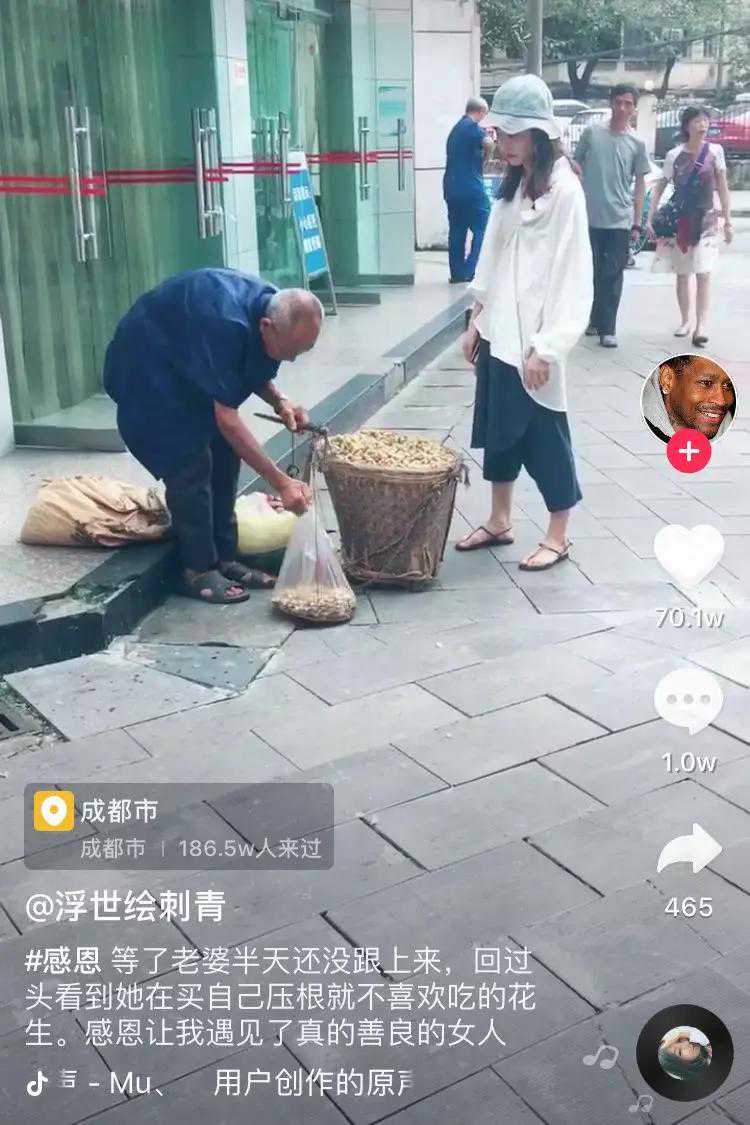 “等了老婆半天还没跟上来,回过头看到她在买自己压根就不喜欢吃的花生。感恩让我遇见了真的善良的女人。”