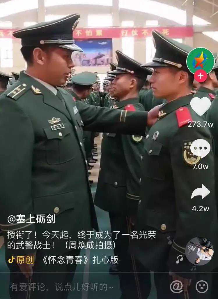 “授衔了,今天起,终于成为了一名光荣的武警战士。”