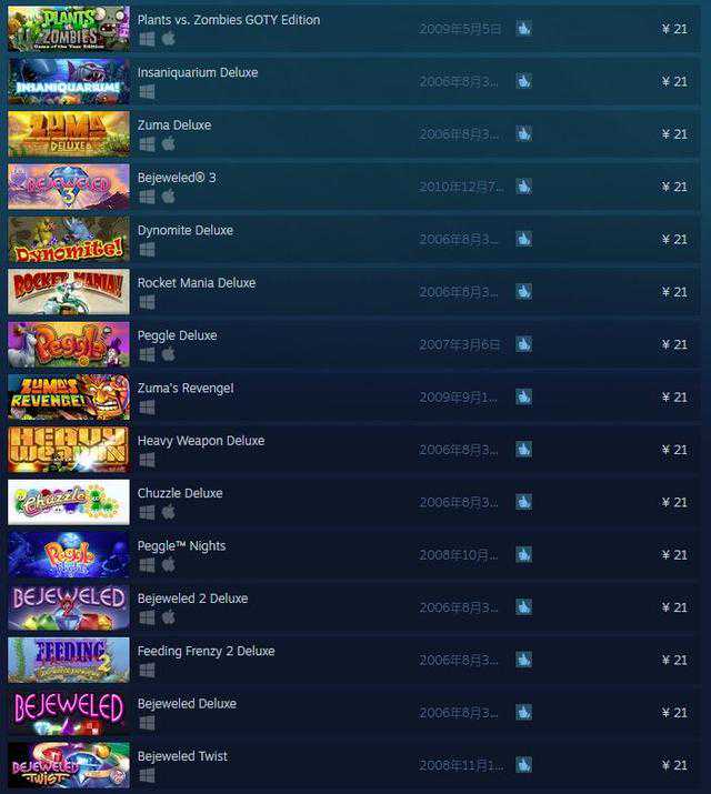 Steam上popcap的游戏真的很多