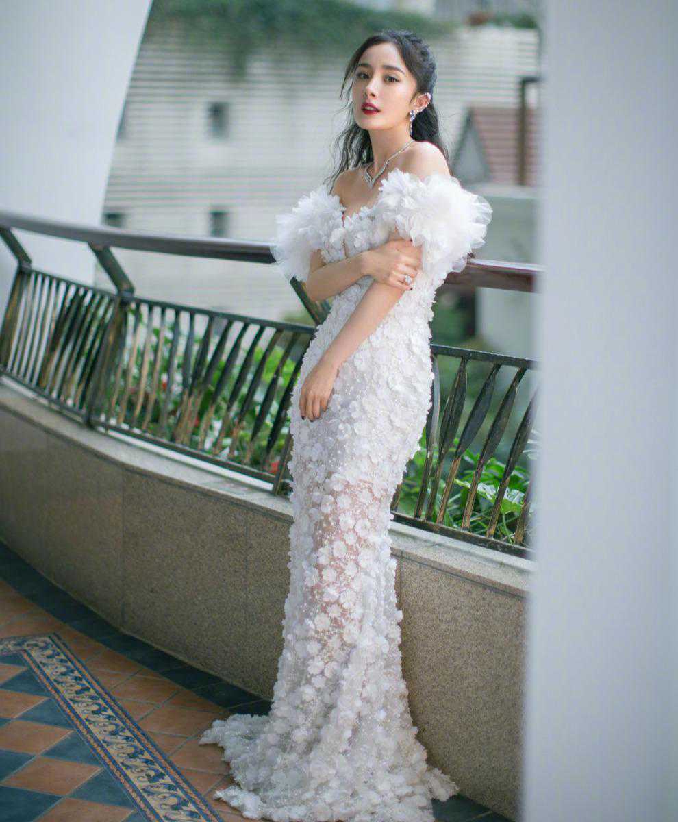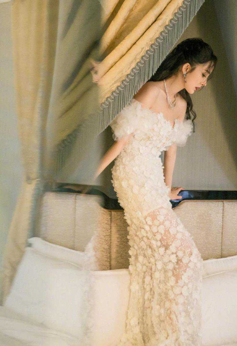 根据工作室发布的照片来看,杨幂的两套战袍分为黑白两色。在红毯环节,杨幂选择的是那套白色花朵抹胸裙,裸肩与花团式的镶边设计可以展现出杨幂的美肩和性感的锁骨,但是裙身上点缀的白纱花朵,再加上现场的灯光略暗,让整件礼服看上去缺少高级感。虽然有满耳的珍珠加持,但红毯亮相仍显得气场不足。
