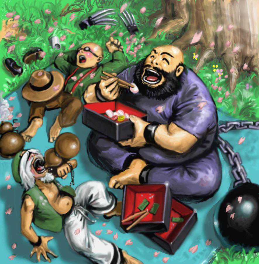 椎拳崇吃包子的手艺也只有在包王手中能发扬光大,将龟和牵制发挥到了极致,再强大的对手也无法近身。他的排面一般是七龙猪、七猪龙、龙猪七、龙七猪、猪龙七、猪七龙、八七猪、八猪七、丸龙七,最龟的角色一般是红丸、椎拳崇和陈国汉,多少次的对战都是“Timeover”判胜负的。