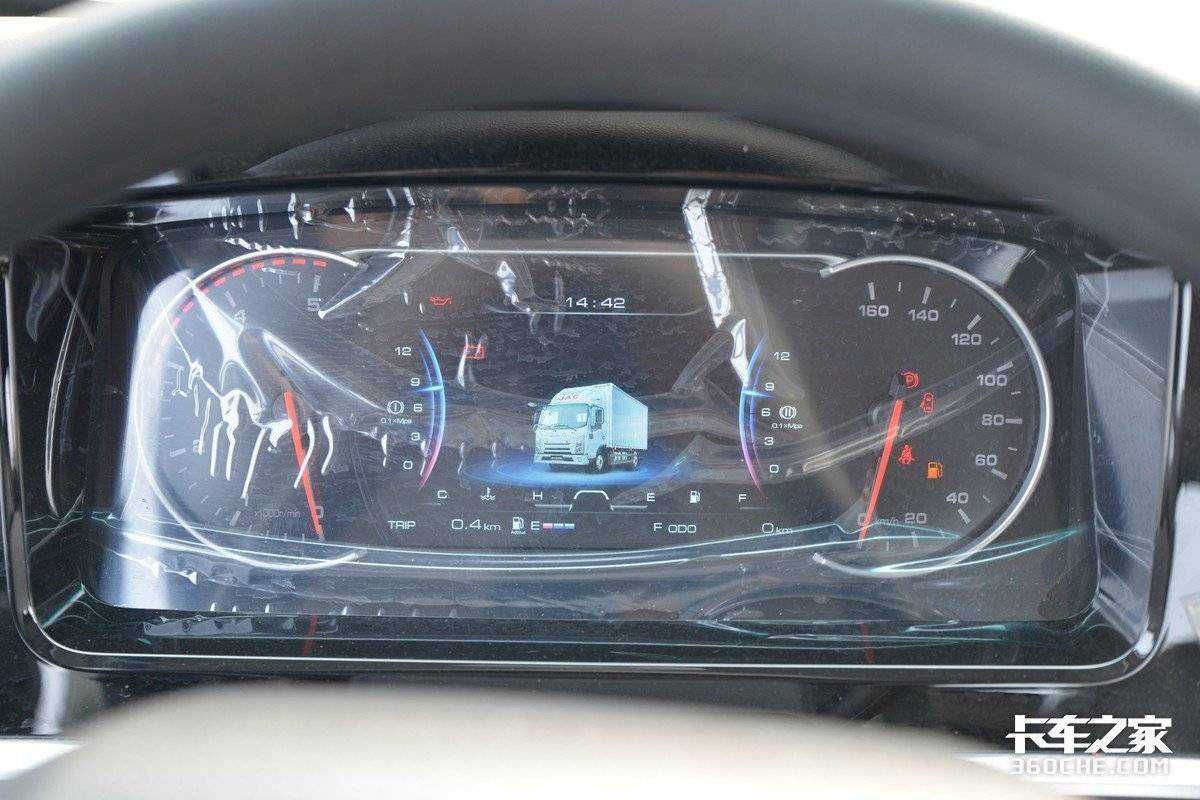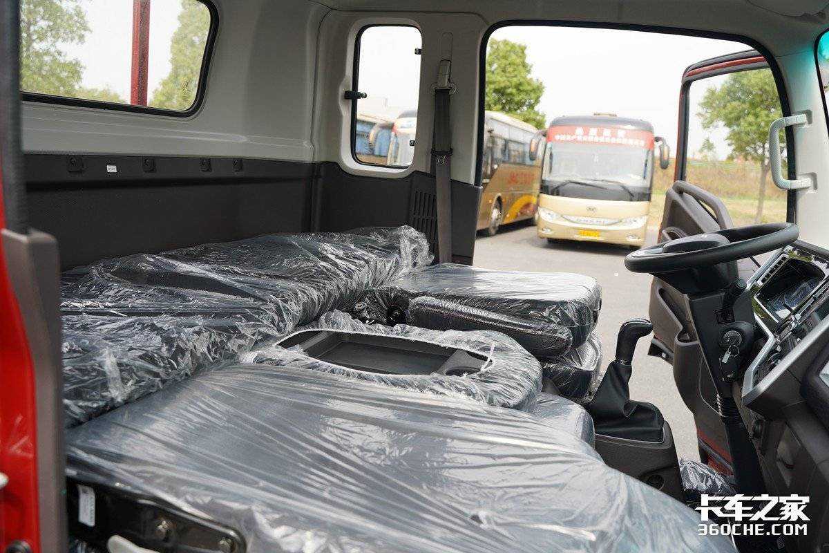 实拍车型的座椅采用皮质面料包覆,日常方便打理,同时座椅的椅面宽大、平整,长期乘坐的情况下也比较舒适。据悉,金饭碗还可以选择减震座椅设计,在应对复杂路况时可以让卡友拥有更好的动态舒适性。