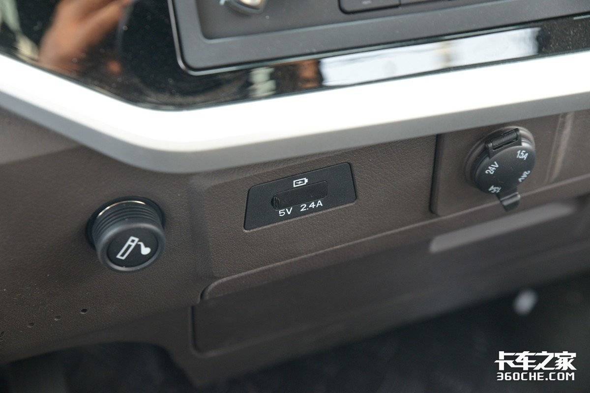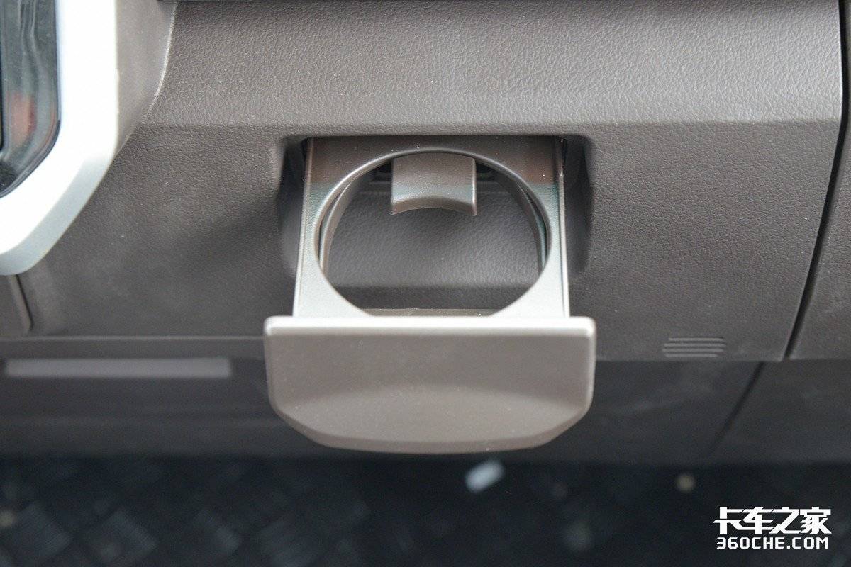在一些细节配置方面,金饭碗也能很好的适应当下卡友的用车习惯,比如多个点烟器电源结构以及5的USB充电接口,方便卡友日常使用手机。杯架设计为隐藏式,需要时即可拉出。