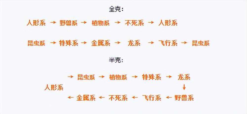 魔力中的宠物分为九个种族,它们的相克关系大致为: