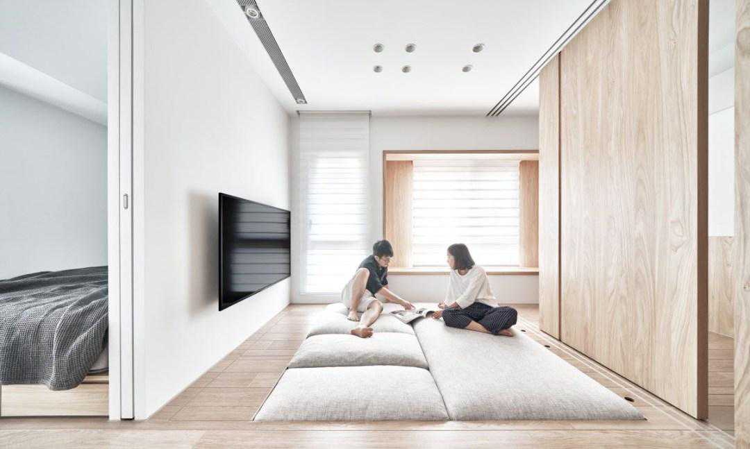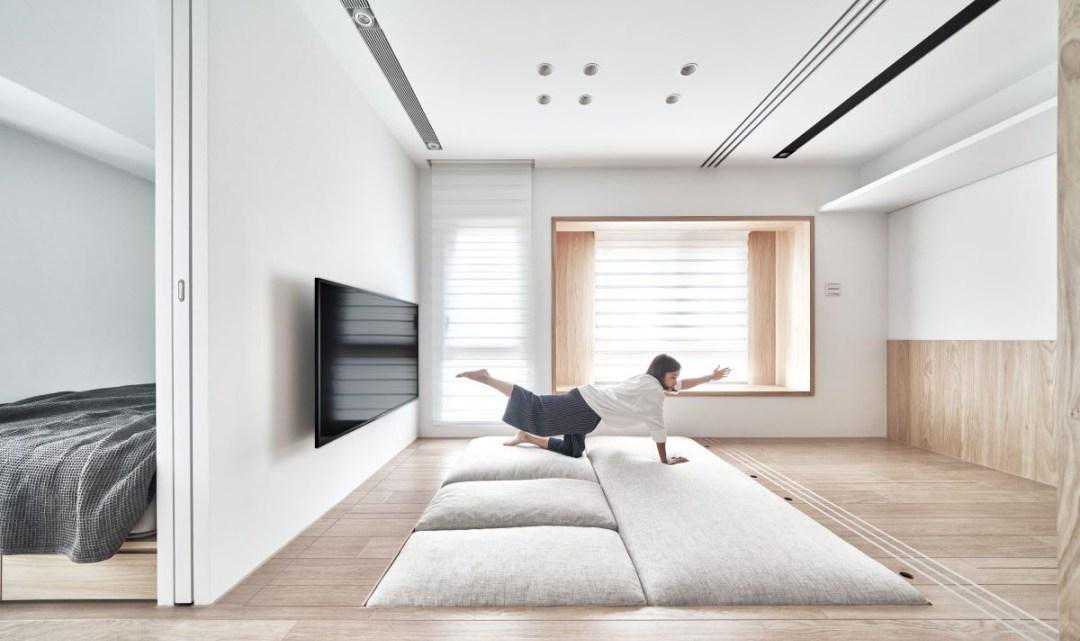 究极放大术!26㎡小宅也能切出两房格局!仅有26㎡的微型住宅,一般通常规划为套房式空间,然而设计师融入弹性的隔间设定,并将卧室和客厅安排于采光面,完全开放时可以释放光线和放大空间感,关上拉门时也能各自形成3个独立空间,因此在公共区之外,还能拥有神奇的两房空间。