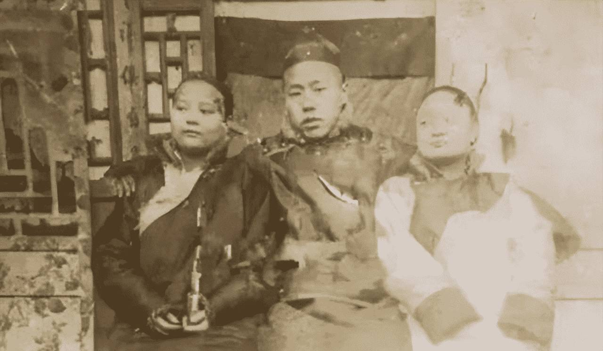 男子搂着他的一妻一妾