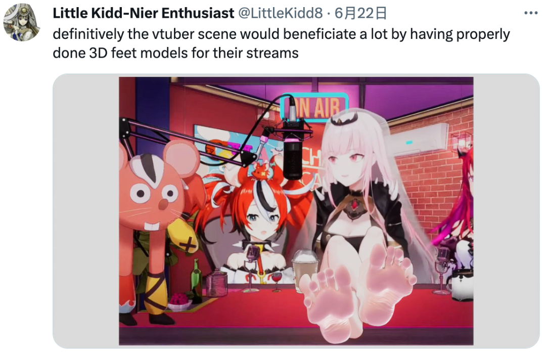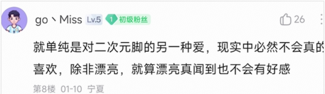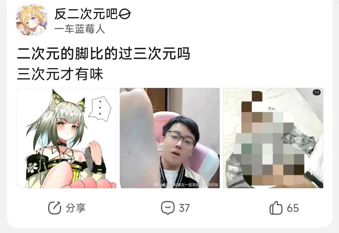 但大部分人在贴吧给二次元角色的脚打分,可能只是一种高阈值精神状态的表征或玩梗,而且二次元的脚和三次元,也是完全不同的两种概念。