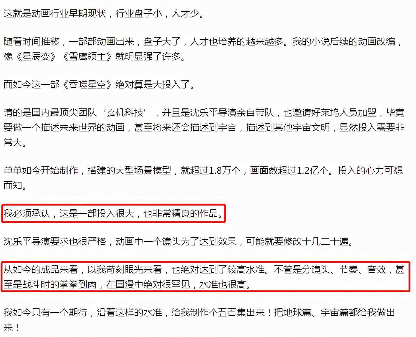 作为同名小说的作者,我吃西红柿也在知乎上给出了“水准也很高”的评价,其本人也非常期待这部动画的后续制作。
