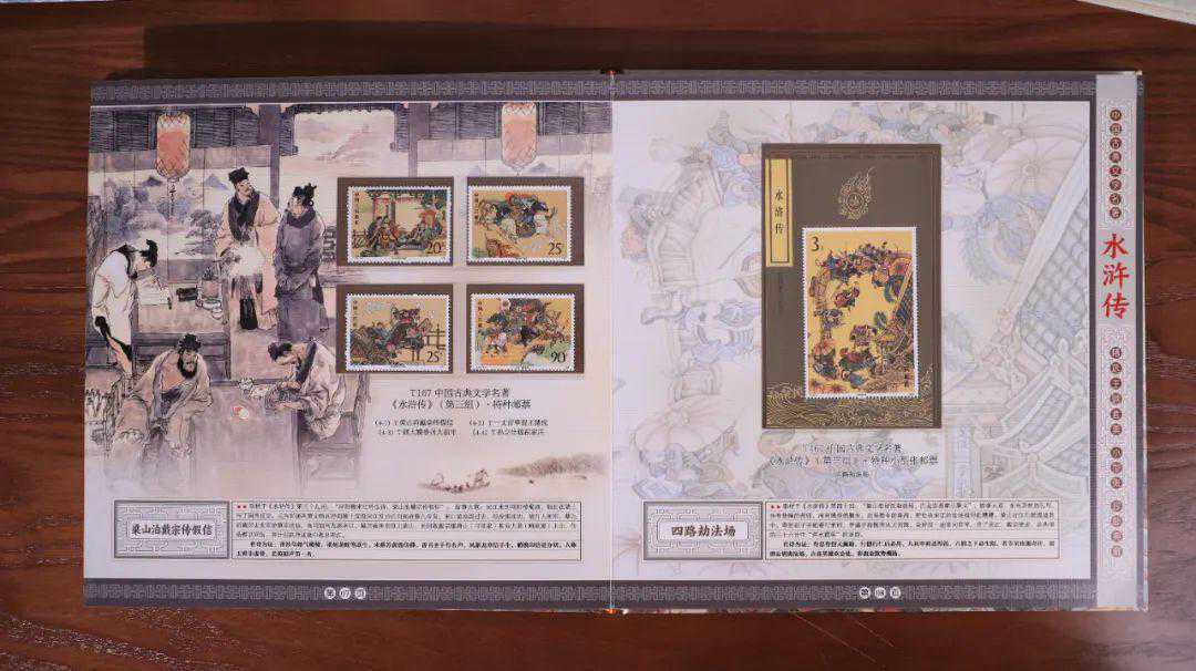 邮册中每组邮票还配有文字介绍,图文并茂地展示四大名著邮票的文化底蕴,翻看欣赏的同时,也能增长知识,接受熏陶。