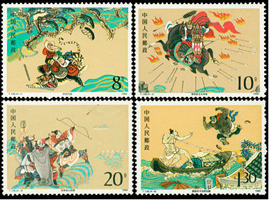 《三国演义(二)》特种邮票1套4枚,分别为:夜袭乌巢、三顾茅庐、单骑救主、大闹长坂桥。