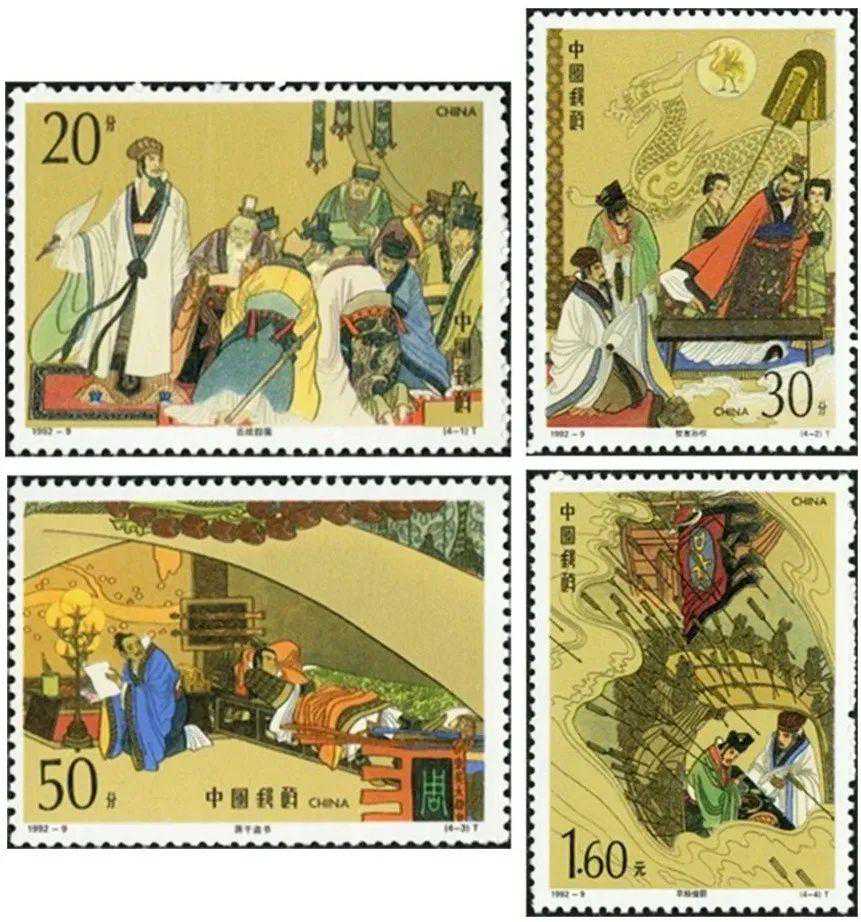 《三国演义(三)》特种邮票1套4枚,分别为:舌战群儒、智激孙权、蒋干盗书、草船借箭。