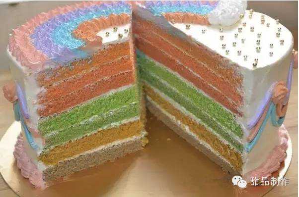 将一个蛋饼放在裱花台上,抹上一层奶油,如此重复,将所有蛋饼重在一起成一个蛋糕体。