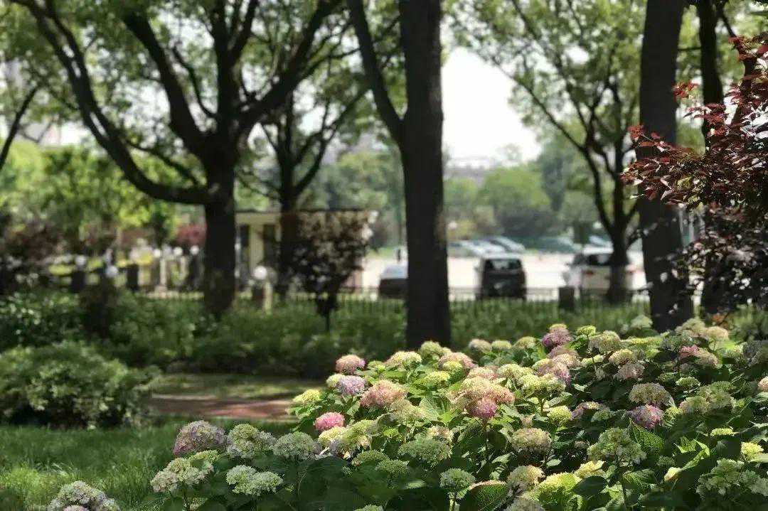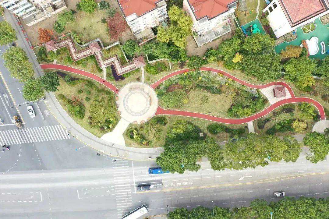 “绣球绿道、美好邻里”。把原有封闭式绿地对外开放,使居民得以亲绿、享绿,绣球花园沿街设置了蜿蜒的红色健康步道,以林下绣球品种为主题,凸显了美好的邻里休憩空间。花园保留了高大乔木,抽稀部分小乔木,改善植物郁闭度。新增红梅、八仙花、毛鹃、金叶石菖蒲等色叶植物,提升绿化景观效果。同时,在绿地中又新增休憩场地、景观廊亭、加设庭院灯、草坪灯等完善了绿地功能景观。