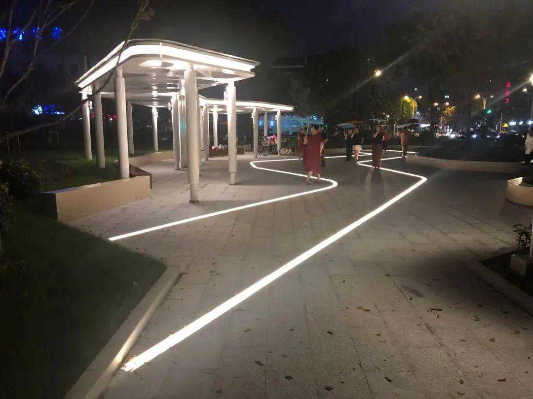 玲珑花园玲珑花园位于卫零路与龙胜路的交界处。在绿地中心的集散活动广场设置了富有现代艺术感的景观廊架以及条形座椅等,为市民提供了更多的休憩活动空间。出入口及座椅旁安置了垃圾桶。为进一步给夜间使用绿地的市民提供便利性,本次绿地改造还专门植入了一套夜间照明系统。
