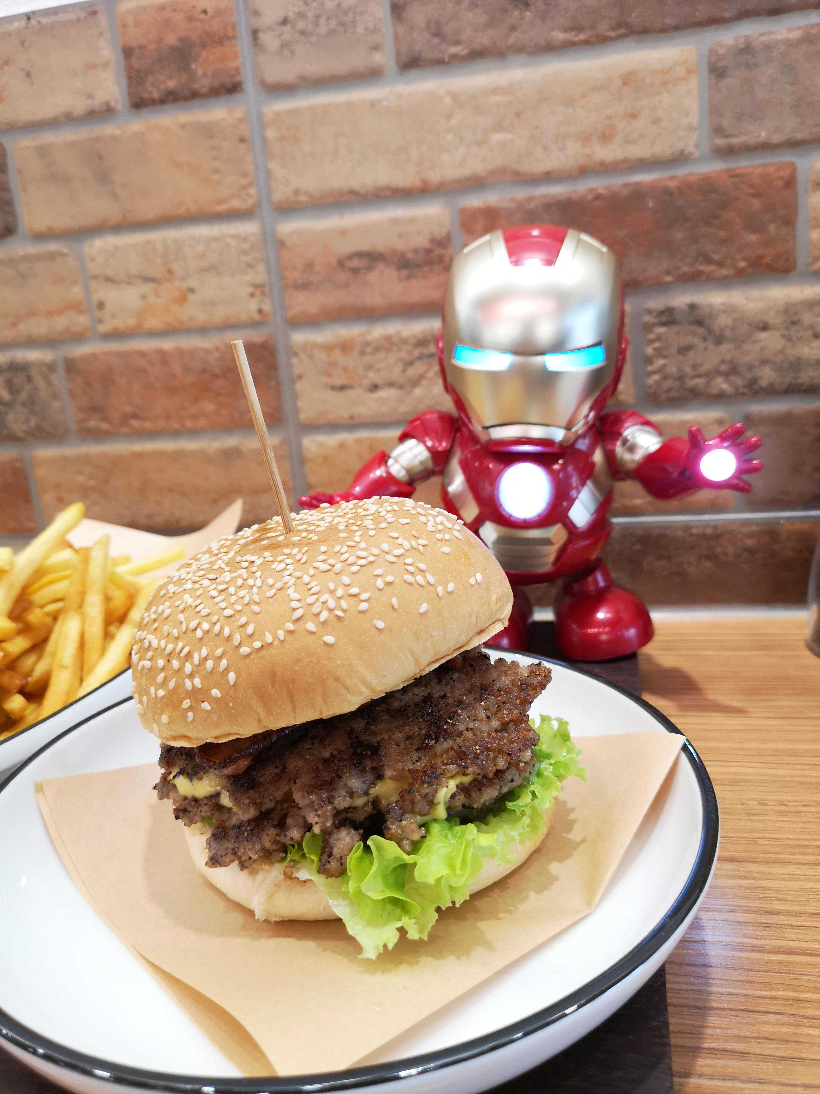 温馨提示:一个人正常饭量一个双层汉堡就可以吃的饱饱的。