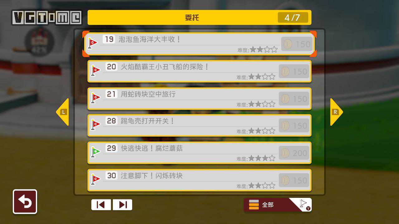 如果玩家对创造关卡没兴趣,那可以试试“马力欧耐力挑战”。该模式下,会让玩家先选定一个难度,系统会随机推送该难度下由全世界玩家制作的关卡。体验类似于其他游戏中的生存模式,一旦把命花完了便告游戏结束,十分考验玩家对游戏内容的熟稔程度。你可以把这个模式当作传统的2D马力欧游戏,目的就是攻克一关又一关,只不过不同的是,关卡风格会在五款游戏间穿插切换,以及关卡的设计者都是普通玩家。