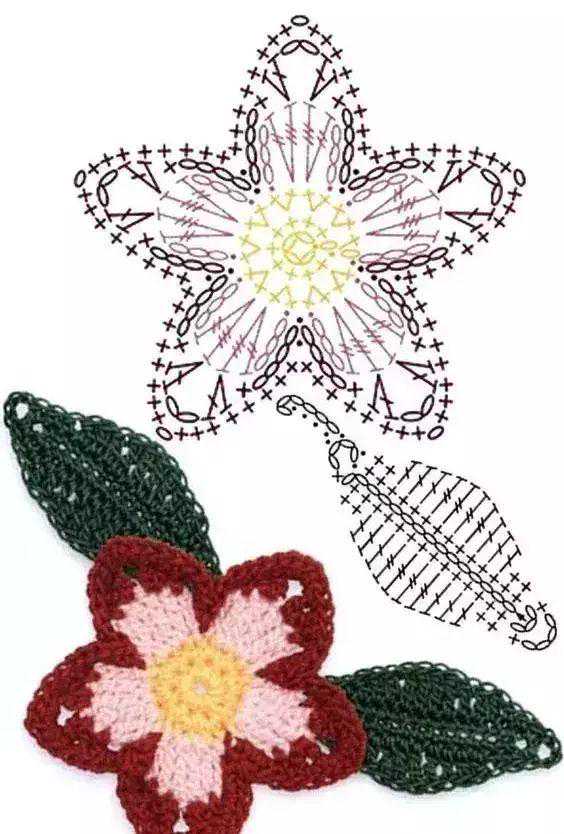 更多的组合方式,等着大家尝试。下面几十款钩针花朵图解,大家收藏好了。