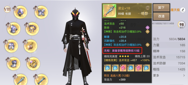 降低佩戴等级的属性在这里变成了“无相”,也是很多卡级玩家最梦寐以求的极品属性。最开始的时候一些玩家爆出来甚至不懂它的作用,总是最低价卖了出去,直到现在才追悔莫及。