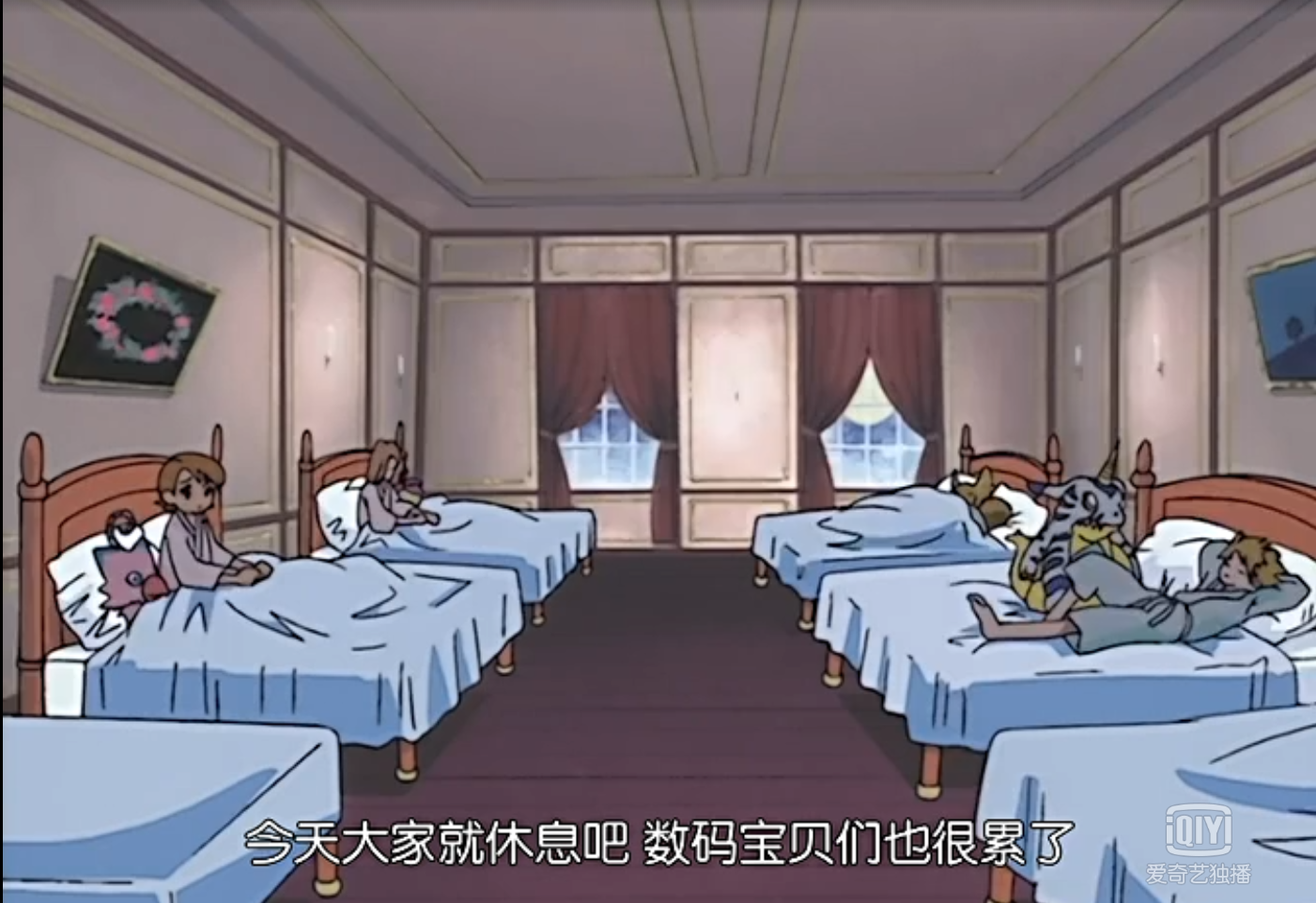 又累又饿的孩子们和数码宝贝们在搜寻落脚之处时,就像海市蜃楼一般,看到了一座豪宅,他们简直不敢相信自己的眼睛。在这个时候,原本最保守的阿助居然是最不顾一切飞奔向房子的人,其他的小伙伴们都感到特别地疑心,如此艰难的野外坏境怎么会出现条件这么好的房子?其中怕不是有诈吧!但是眼下也顾不得那么多了,也没有别的选择,于是他们就开始怀着忐忑的心情开始难得的休整。