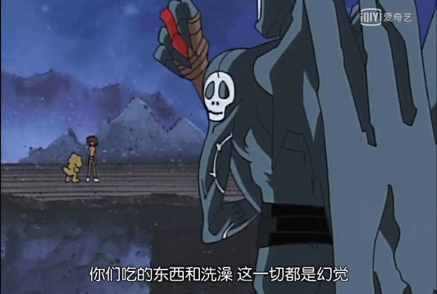 然而,这一切的一切,原本就是恶魔兽的阴谋,被选召的孩子们所经历的一切看上去特别舒服美好的事物,原来都只不过是虚假的幻象。他们见到的房子是假的,甚至吃的食物也是假的,这一切都是恶魔兽为了杀死他们所营造的幻境。因此,在面对恶魔兽和他的两个手下的攻击,本就疲惫不堪的孩子和数码宝贝们毫无招架之力,也由此分散开来。