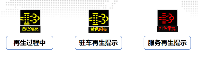 驻车再生提示:指示灯黄色闪亮,需要停车操作再生;