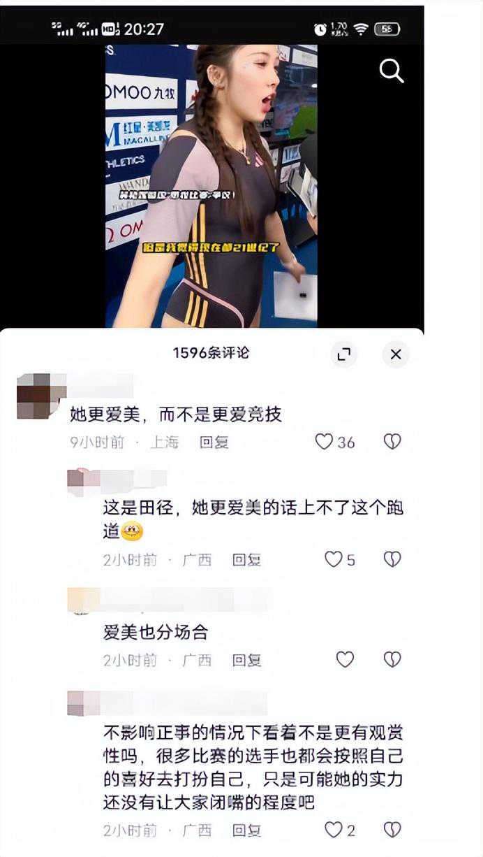 喜欢她的人觉得她特立独行,展现出了运动员的另一面,不喜欢她的人,觉得她化妆、编头发是对比赛的不尊重。
