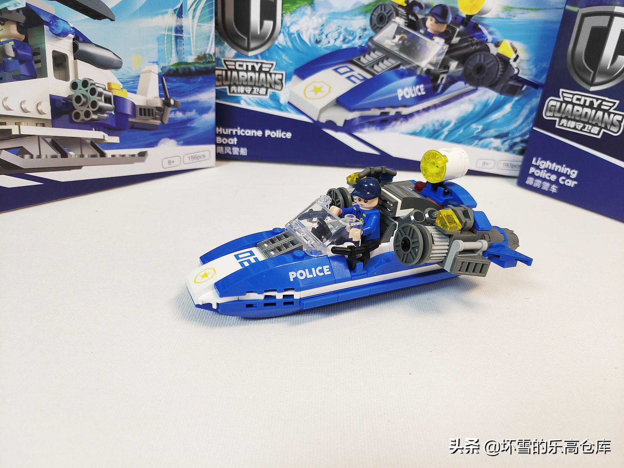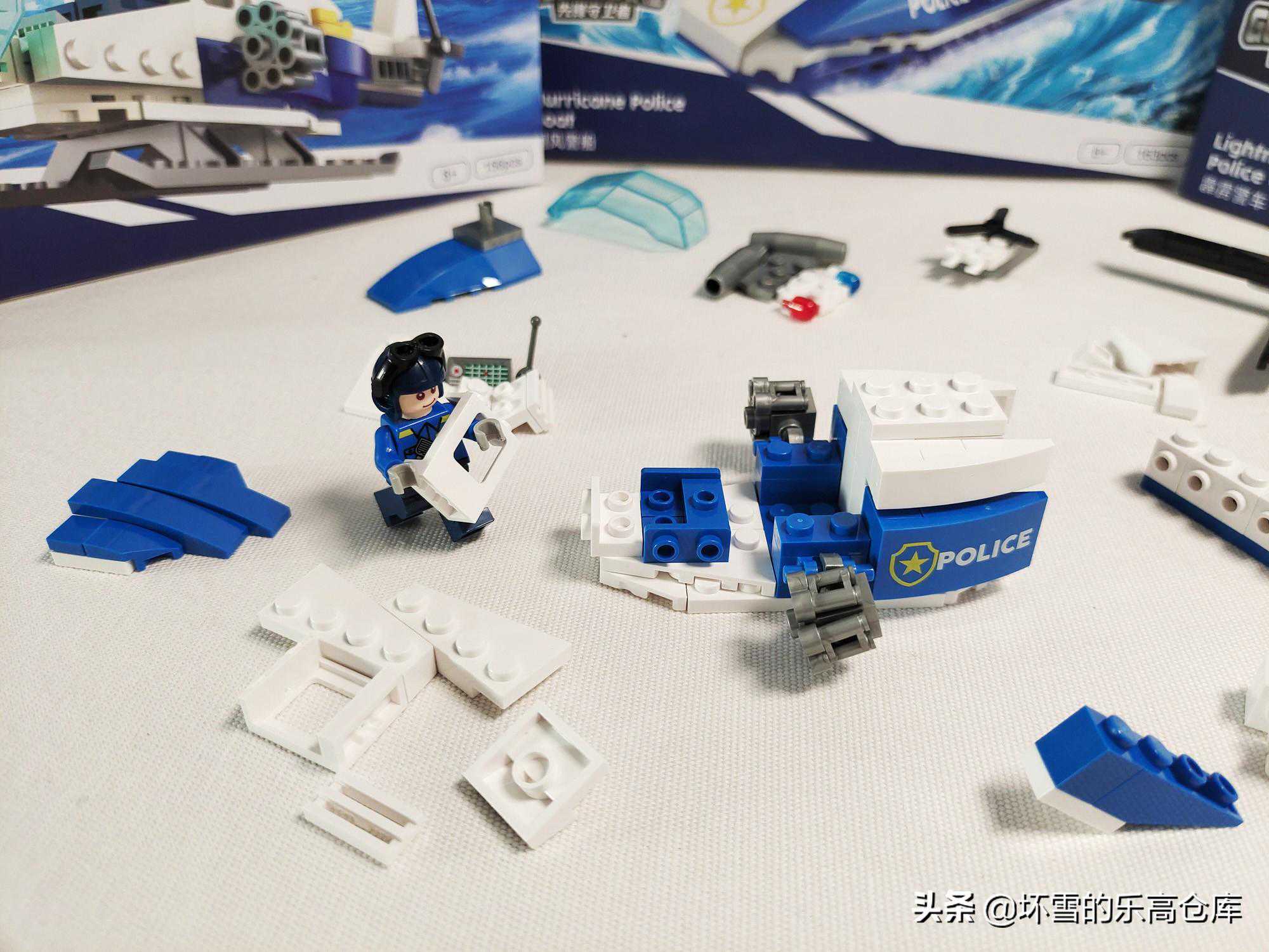 接下来是这几款套装的重头戏,飓风警用快艇。相比一般警察系列,警车、警用飞机出场比较多,警用船只就相对少一些。同样是三包零件一个人仔,加一张说明书。