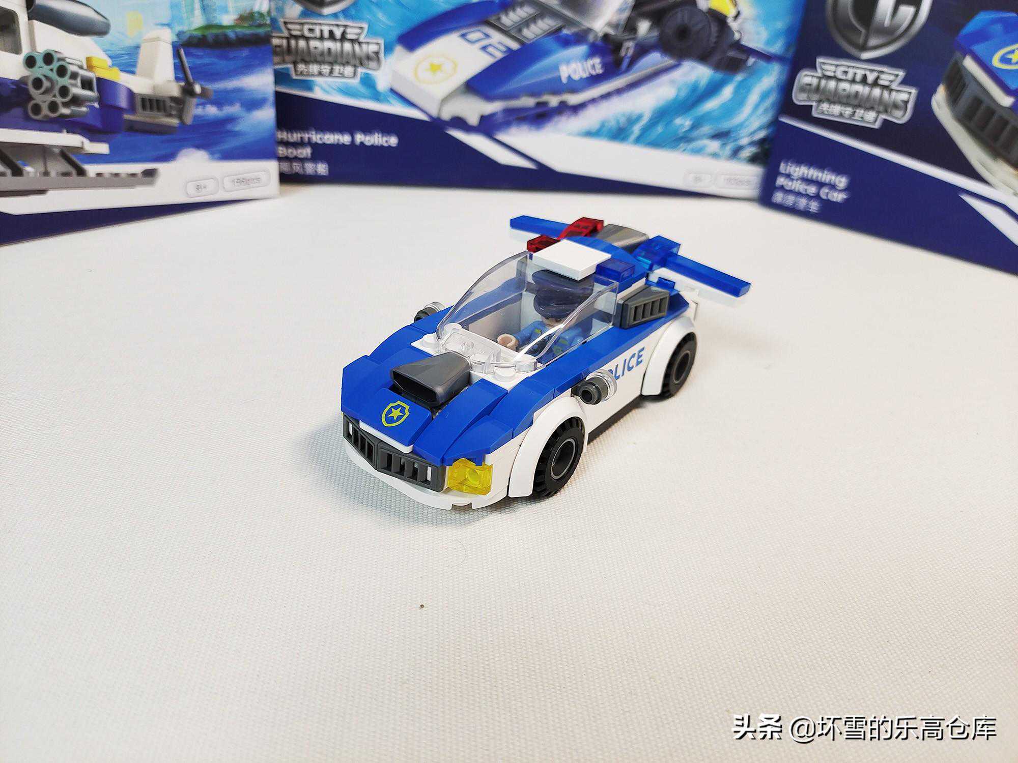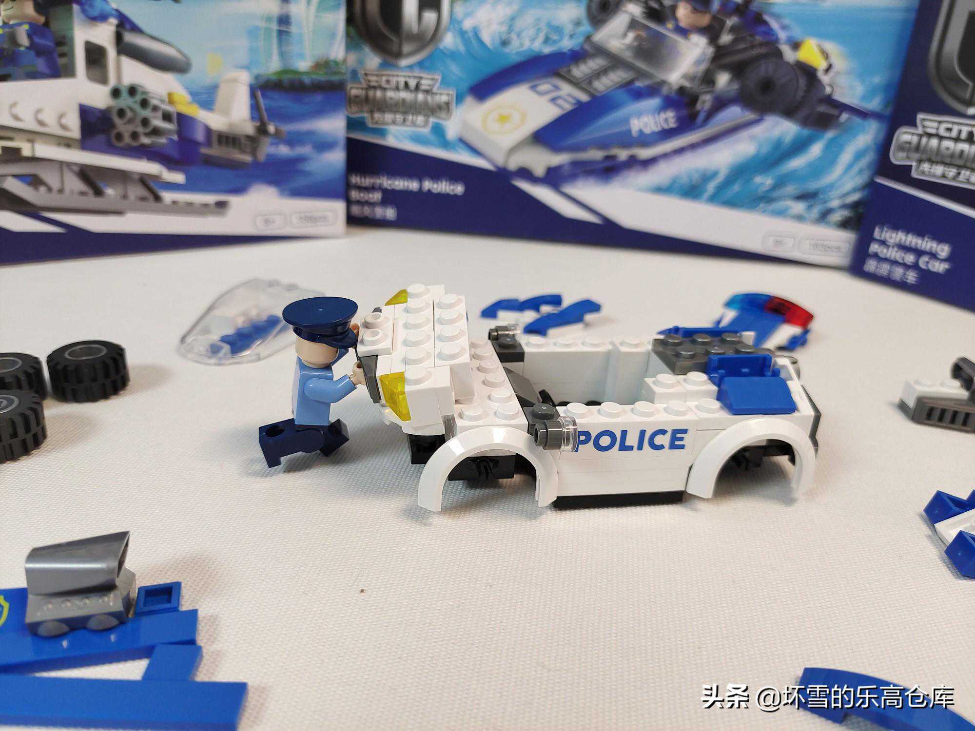 那边同伴们已经在拦截大盗了,就差这辆警车没有出发了,让人仔抓紧时间拼起来,就是注意轮子不要丢远了。