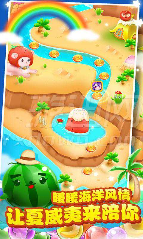水果大变身,果汁爆浆四溅,酷爽到爆。多个游戏萌主任你挑选,让你随时随地萌翻天;多种游戏玩法酷炫来袭,让你趣味拯救精灵;更有椰林树影、海洋风情,夏威夷无时无刻都在陪伴你,配合超级疯狂的创意消除,动感十足的背景音乐,让你尽情释放指尖的魔力,赶快加入我们的泡泡龙大冒险吧!