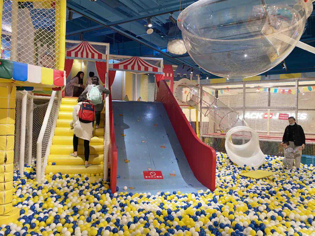 接着是锻炼孩子们大运动的区域——冒险岛,海洋球、大滑梯、钻洞子,充分消耗娃娃们的电量。每天晚上工作人员都会将海洋球统一清洗消毒,安全卫生做得非常好。整个区域内墙侧有很多空气小游戏,运用气流原理将海洋球抛向空中;外墙侧则是一些独立的小型的益智小游戏,锻炼手眼协调能力和敏捷性。
