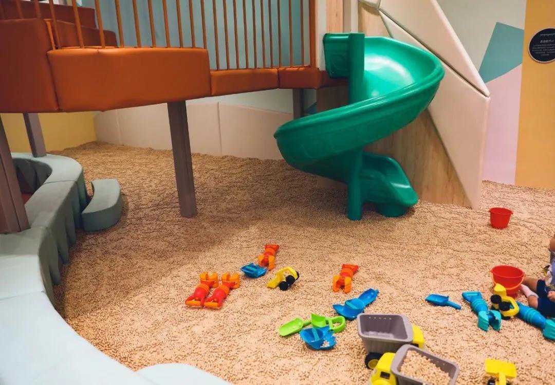 男孩子们最爱的挖掘游戏,有海沙池和木头池两种选择,海沙池里的海沙从海边专门运过来,高程度地复刻了海边玩耍的感官体验,出池子还配备了专门用来打扫身上海沙的气枪;木头池的木块,一颗颗被打磨圆润,不会伤到小朋友。