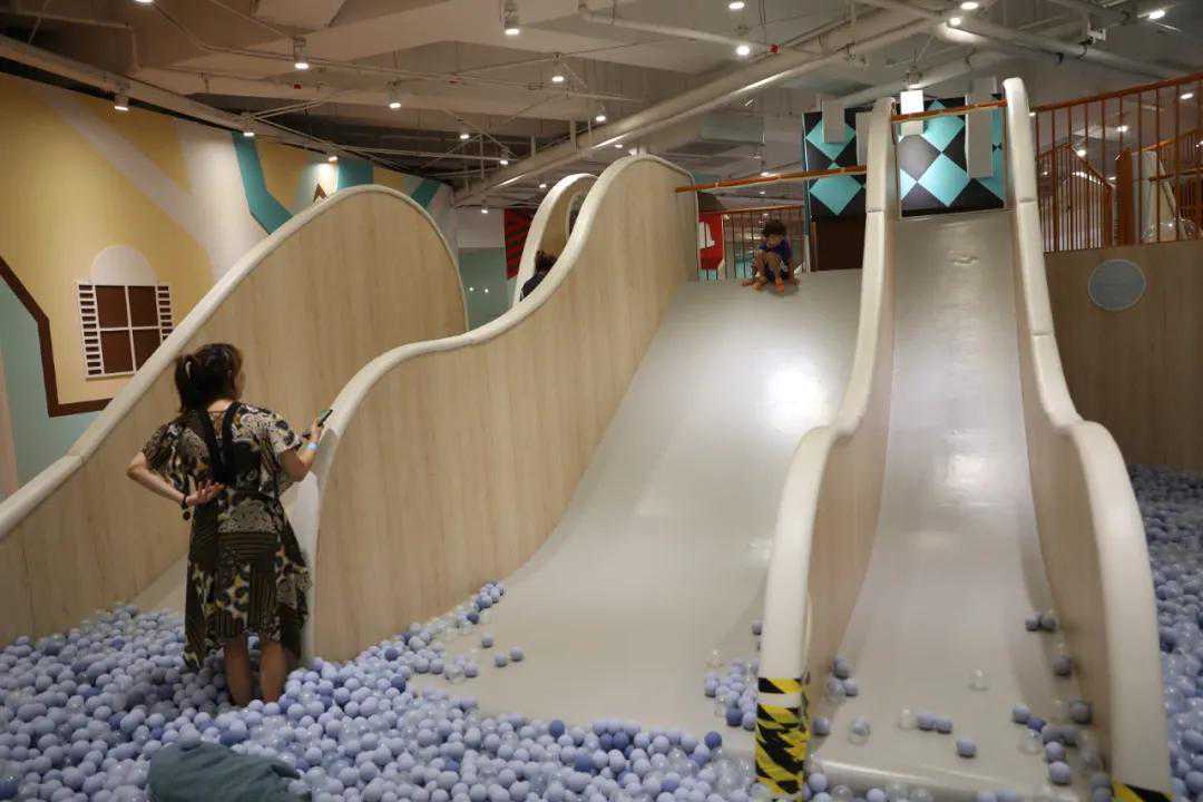 最速曲线滑梯和宽幅滑梯是乐园里孩子们的最爱,几乎90度的垂直高度,从上往下“嗖”地一下滑下来,刺激又好玩。