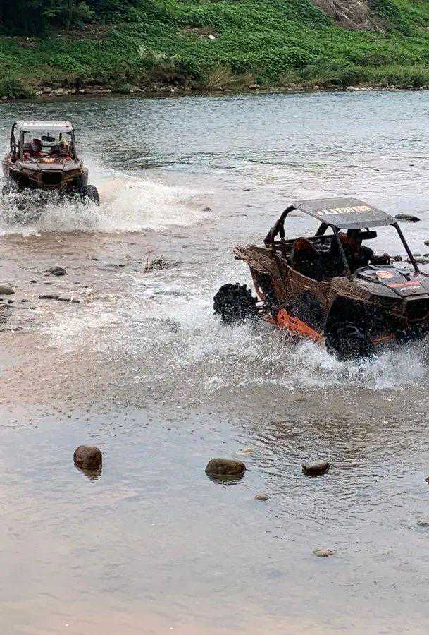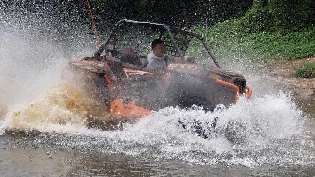驾驶100多马力进口UTV在10万亩竹林深沟中驰骋、在山泉水汇集的大河中激扬;感受车轮压过土坡的失重刺激,御风越过泥泞的清爽惊险!