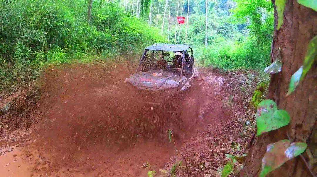 在竹林河沟溅起飞泥,穿越10万亩原生竹林深沟。越过丛林里一个个或浅或深的坑洼、或低或高的土丘,油门和刹车切换,身体猛地向上飞跃,加速刺激,再来一场自然的“泥浆浴”。