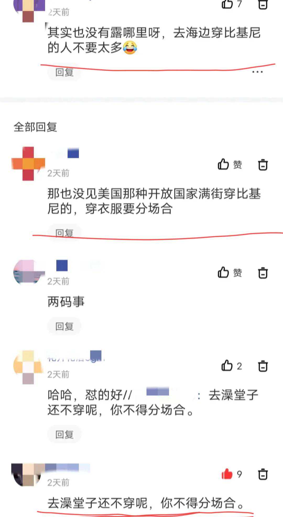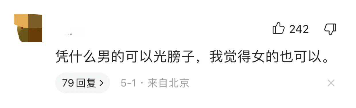 当时网络上大致分为两种声音,有一些人表示女性就该穿衣自由,男性都已经光膀子了,为什么女性就不行?