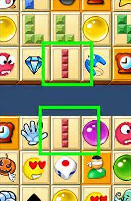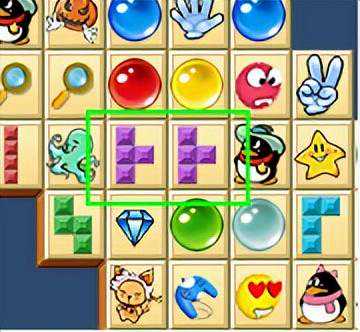 垂直方向,如果两个一样的方块,处于同样的Y轴上,中间没有任何方块可以消,如图