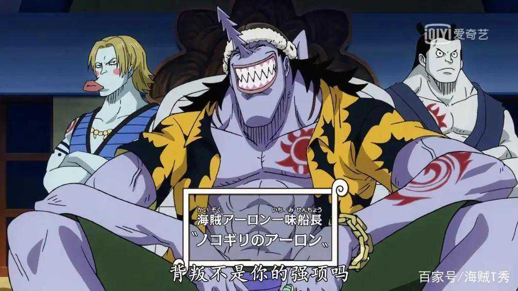 阿龙比起海贼更像是个山贼,阿龙生来就带着对人类的蔑视,泰格之死更是让这份蔑视变成了仇恨。甚平成为七武海后,阿龙也被放出监狱,他把仇恨发泄到可可亚西村,杀死了贝尔梅尔,强迫每人每月上缴10万贝利的保护费。