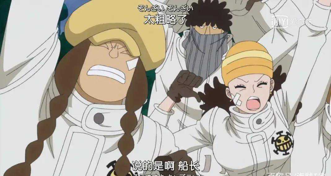 讽刺的是,两年后红心团活跃的只有贝波、夏奇、佩金三元老,连强巴尔的戏份都一再削减,更不用说剩下那些龙套了。这个妹子名叫一角,我们能够得知她的名字,还多亏了她是少数反对罗路联盟的船员。不过所谓的反对也只能发发牢骚,罗已经拍板也只能接受了,现在路飞更是成了打倒凯多唯一的希望,一角也是救治路飞大军中的一员。