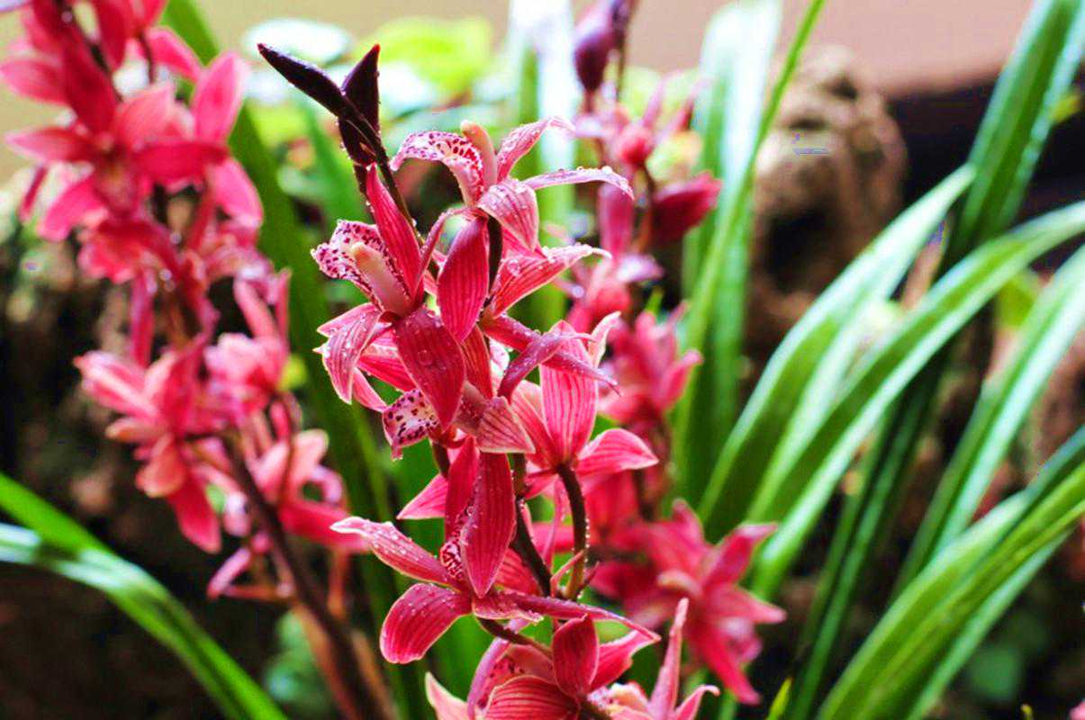 紫霞仙女的花杆笔直挺拔,一个花杆上满满的都是花苞,摆放一盆在家里很喜庆,它的花期超长,从半开到全开,单朵花期能够保持一个多月,小编家里养过一盆,花苞从开始差不多一个月都没败落,保持的极好,因为属于建兰它的开花能力很强,基本是四季开花,月月都能开爆盆,一般2—3个月开花一次,在北方地区至少能开上3次以上,在南方则开花频率更高保持在4、5次。