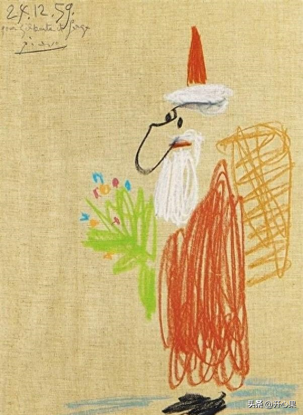 311959年12月24日,艺术家巴勃罗·毕加索创作的圣诞老人。看着挺简单,但又说不出来的好看。