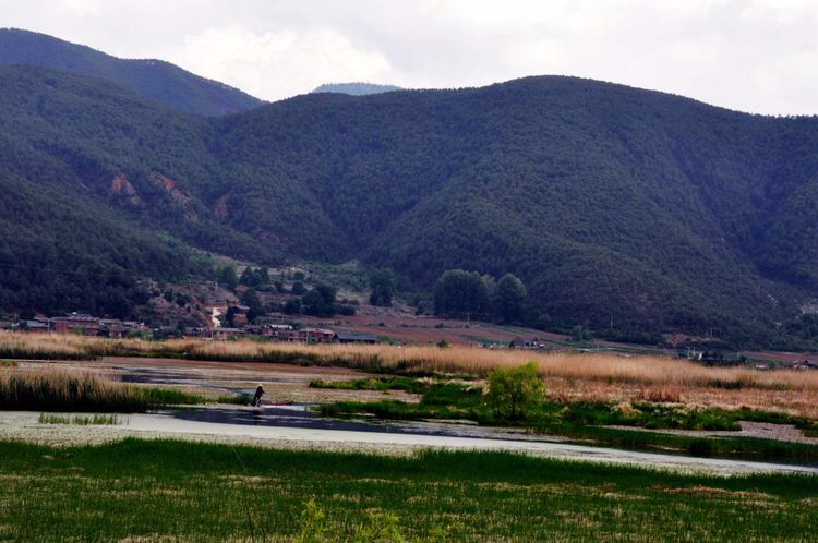 5.23泸沽湖第二天。洁白柔软的客栈大床上睁开迷离的睡眼,耳听得众人一致赞同再留一天的提议。竟而又陷入美好未尽的旖梦之中,山映斜阳天接水,好梦留人睡。哪怕在此留得一生一世,吾亦心甘。大梦已尽,哼着那首《爱上杨二车娜姆》,踱着悠闲的步子,在客栈恶狗保安斗牛的怒视中,安逸的湖边早餐。手忙脚乱的租赁了电动自行车,在队友们五颜六色衣裳飘舞中呼啸飞驰而去。环湖骑行,身边五彩鲜花遍地,碧蓝湖水中白色的水性杨花,如夜空里璀璨的繁星点缀着。微风拂面,阳光和煦,白云朵朵,胜似神仙。中午在泸沽镇上一个乡村土菜馆品尝那地道的云南四川美食。下午乘车游览走婚桥,草海栈道,看泸沽湖夕阳西下,把自己染成满身黄金甲。