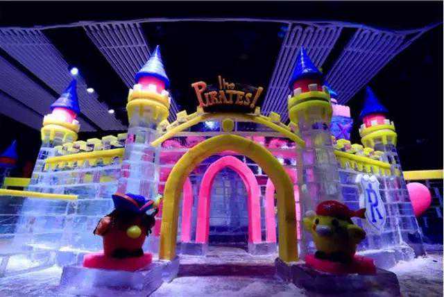 海盗和宝藏被做成造型百变的冰雕,