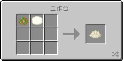 最后一步!包饺子!把饺子皮和饺子馅在工作台上搓一搓就可以了!(不要问我怎么没煮没蒸,在我的世界里,我说它是熟的,他就是熟的!)