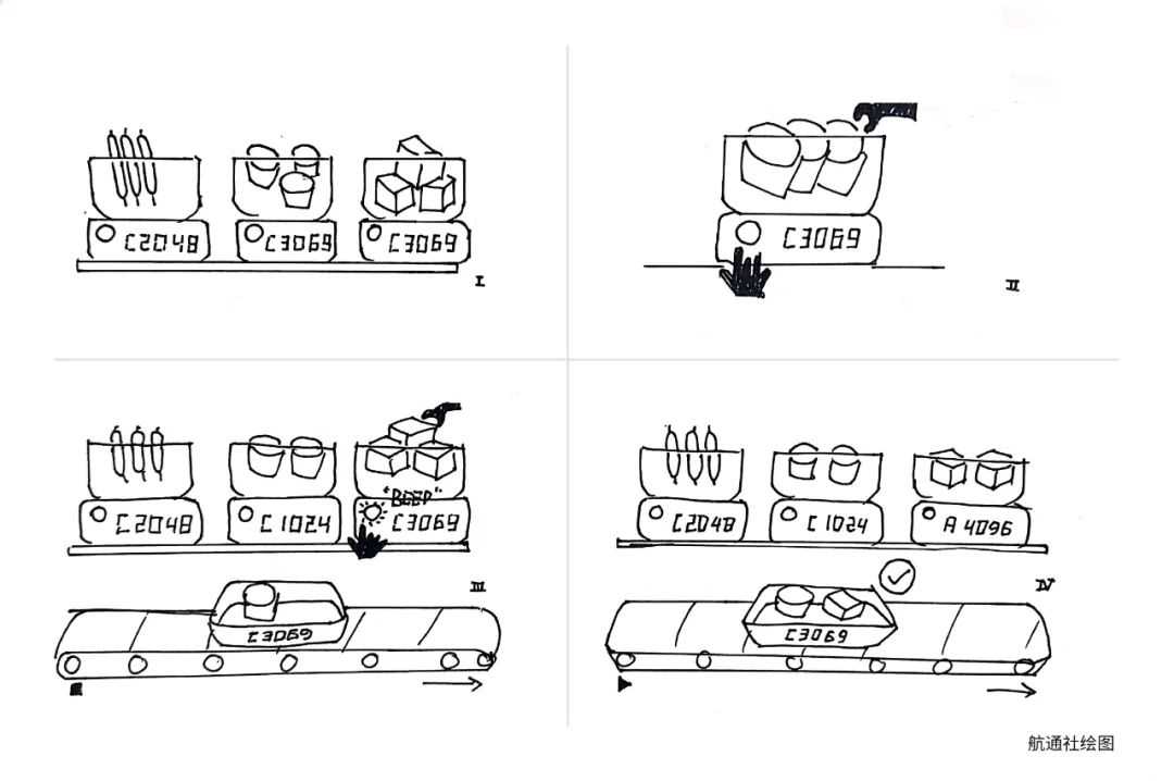 如此重复,筐里的东西逐渐多了起来,这代表着“C3069”店所缺的货品逐渐找齐。当最后一盏灯拍灭之后,筐送到流水线上传送出去,员工开始为下一家店配货。