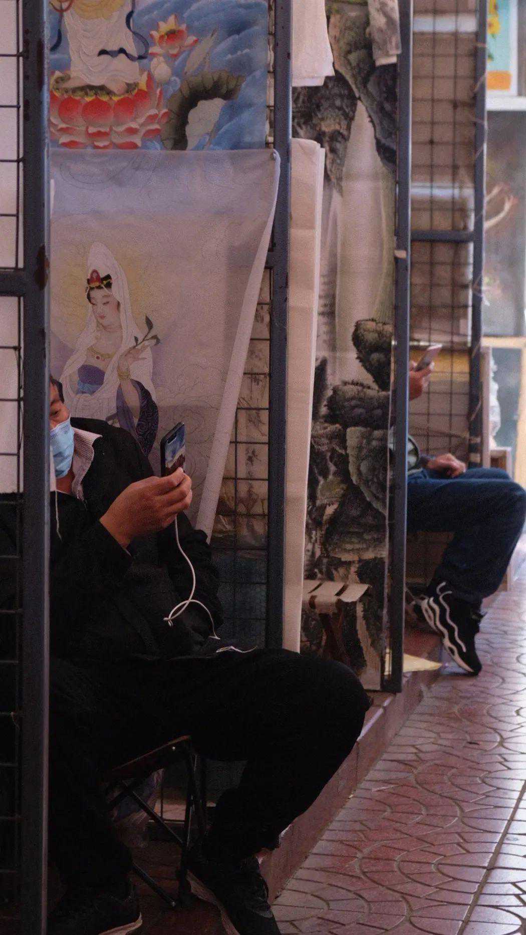 这里的摊主总不闲着:有生意了,和客人聊聊;没有生意,就和隔壁摊主聊聊;或者打个盹、玩会儿手机;再或者,放点音乐,唱唱歌,反正没有人会指责:“爱像风筝断了线,拉不住你许下的诺言……”