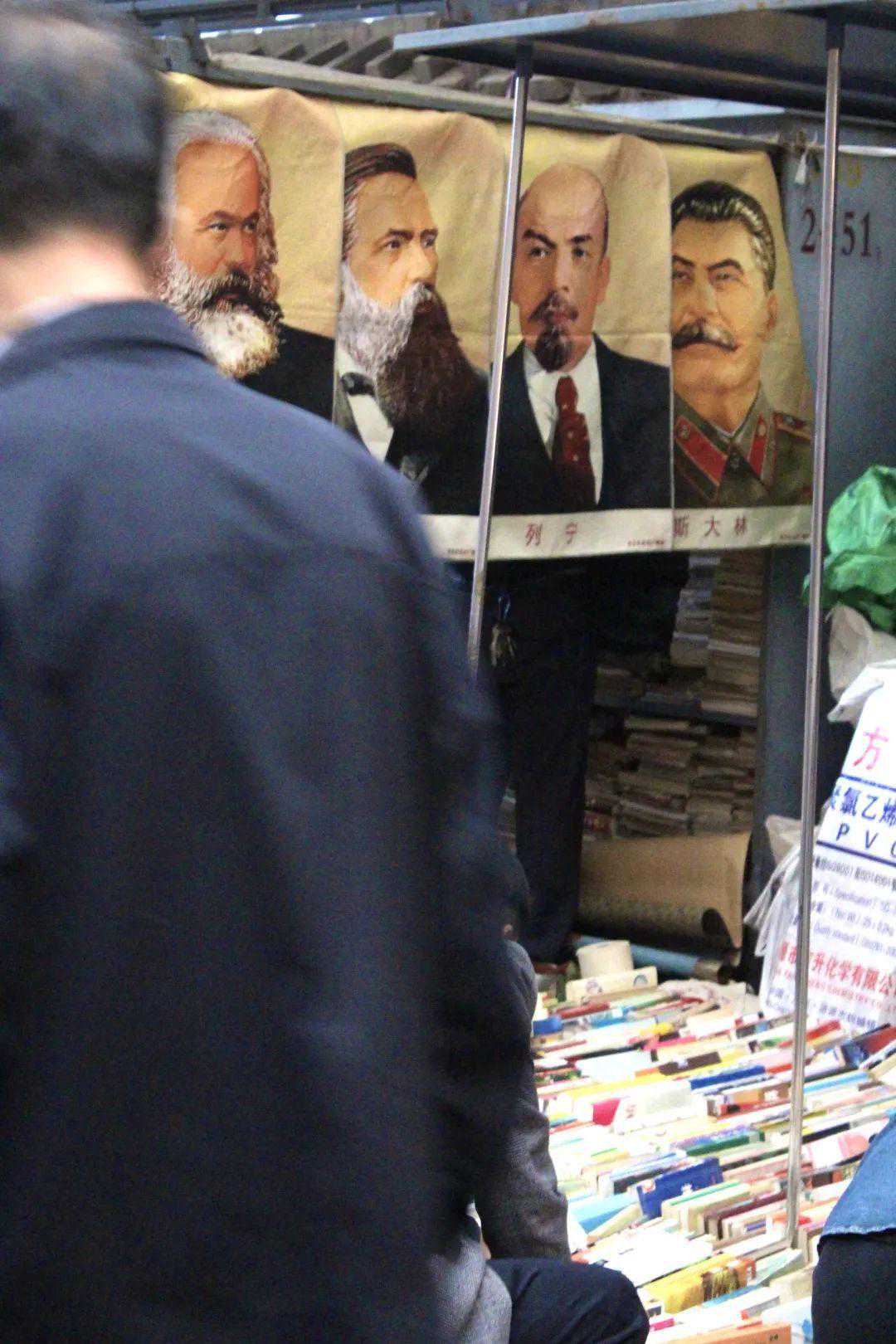 旧货市场大而整齐,货摊一列又一列,从中走过像是在穿梭隧道;佛像们被标价出售,摊主坐在其中,好奇怪呵,神佛簇拥着凡人;旧书市场在角落里,阻隔了大部分阳光的顶棚使这里显得昏暗落寞,空气里弥漫着旧书的灰尘和二手烟;旧书被一排排整齐码开,供人挑选。