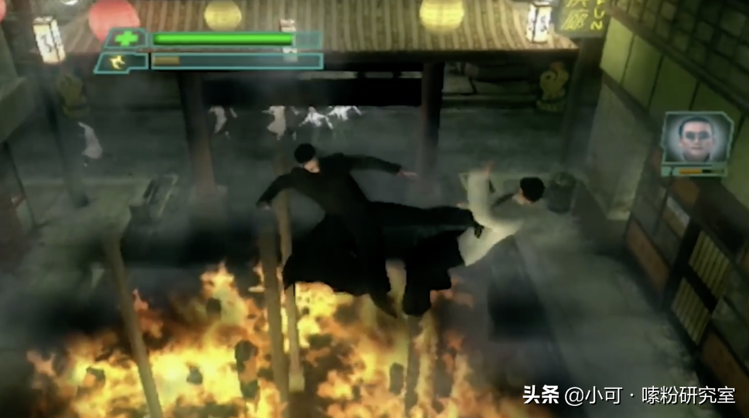 当然游戏中的这一段天台打斗戏码要长许多,Neo和Trinity不仅要击败不断空投下来的特警,还要打爆远程攻击的武装直升机。